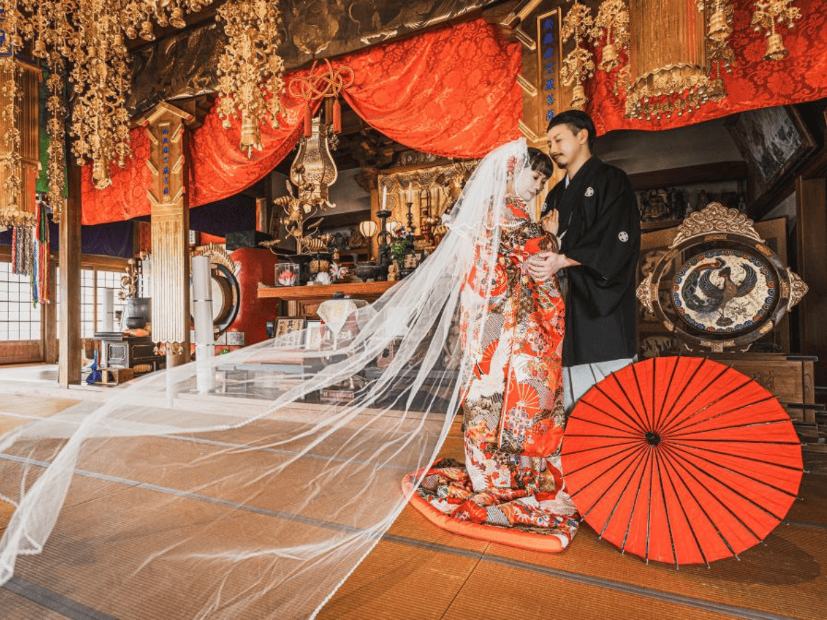 「リサイクル着物専門店忠右衛門」(浜松市中央区)はこの度、200年の歴史を持つ縁結びの聖地「舘山寺」で撮影する、【本格的な和装フォト撮影プラン】