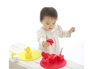 4つの色のつみきとフェルトで、色と形を識別する力を育てます。