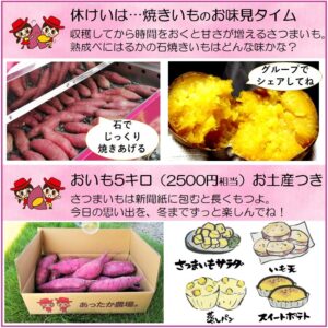 今回のまあるい畑は、ここ浜松・篠原を代表する「たまねぎ」の植えつけと&ねっとり甘くてスイーツみたいなさつまいも「べにはるか」の収穫。掘ったおいもを洗って、重さをはかって、ひげを切って、、、農場で収穫後に行っている出荷作業の体験も。疲れたら「熟成べにはるかの石焼きいも」でほっとひと息。べにはるか5キロ(2500円相当)のお土産つき♪