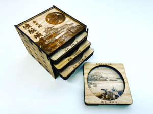 2.「浜松城」&「東海道五十三次」の立体コースター(桐箱付き)