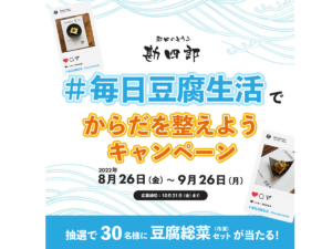 さらに、毎日豆腐生活セットの発売を記念して、Instagram投稿キャンペーンも行っています。キャンペーン応募者の中から抽選で30名様にお肉不使用の「大豆と野菜のやさしい餃子」と勘四郎の人気商品「豆腐ハンバーグ」のセット(冷凍)が当たります。 詳しい応募方法はキャンペーンページをご覧ください。