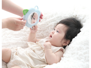 赤ちゃんの好奇心を刺激する 布製ソフトミラー「わっかミラー」に 新柄4種登場!