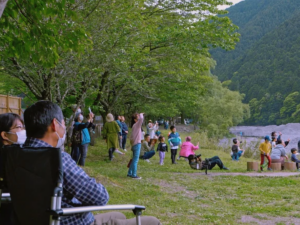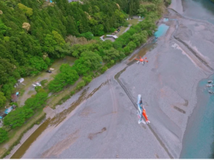 当日は⼤型ドローンが、鯉のぼりが、みんなの想いを載せたバナーが悠然と⼤空を泳ぐ光景を地元の方やキャンプ場のお客様など約50名の方にご覧頂きました。