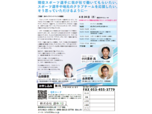 岡田武史会長、永井、山田に加え、静岡SSUボニータ監督の小川 貴史氏を交え、「スポーツと働き方」をテーマにしたクロストークを行います。