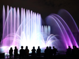 水と光と音が織り成す幻想的なショーを体感できます。音楽に合わせて色鮮やかな水と光が一体となって踊るように動きます。