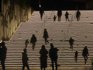 遠くから見てもインパクトある大型階段イルミネーション。見るだけではなく、つい上ってみたくなる、そしてシルエット写真撮影も楽しめます。