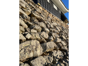 自然石や割石をほとんど加工せずにそのまま積み上げていく方法のこと。野面積みの石垣は強度が高く、隙間がある分、擦れによる圧力が分散されるため地震に強いのがメリット。浜松城の石垣もこの方法で建築されている。