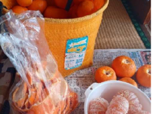 この三ケ日みかん石鹸は、あらたまの湯の社員の縣さんが提案しました。縣さんの実家が三ケ日町の猪鼻湖の湖岸近くでみかんを栽培しているので、そのみかんを使って地元ならではの新しい石鹸が出来ないかと考案し、母親と共にみかんの皮をむくことから始まりました。
