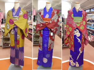 実施概要:かねた忠右衛門店頭(本店:中区中央)で、コラボ企画限定商品の中からお好きな着物、帯を選んでいただきます。アレンジは自由!ご自前の衣装、小物と合わせコーディネートをお楽しみください。