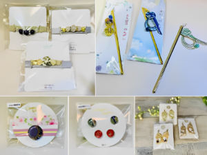 本コラボは、リサイクル着物専門店かねた忠右衛門が毎月開催する着物イベントに参加するため、着物用の季節小物をルーベラが作ったことからはじまりました。ルーベラが得意とするパワーストーンやとんぼ玉、レジンや水引などを使っている点が特徴で、一点一点手作りで丁寧に制作してい