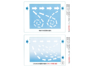 「VS-01(本製品)」はフィルターを通過させたり薬品等で殺菌、滅菌することなく「気圧傾度力」をもちいて早く室外に汚れた空気を排気するシステムです。