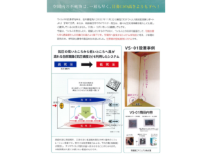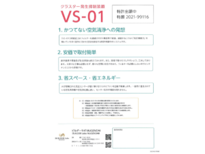 新開発のVS-01はクラスターの発生を抑制する新システムです。皆様の安全安心空間の部屋づくりを応援します。