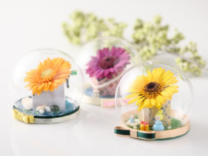 最終的には、「ガラスドーム」、「ガラスのミニチュア」、「ガラスの砂」を組み合わせた、最もかわいらしく、最もルーベラらしい、今の「ガーベラサンドドーム®」の形にたどり着きました。私たちの工夫と努力、情熱のつまった本商品を多くの方にお楽しみいただけたらうれしいです。