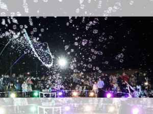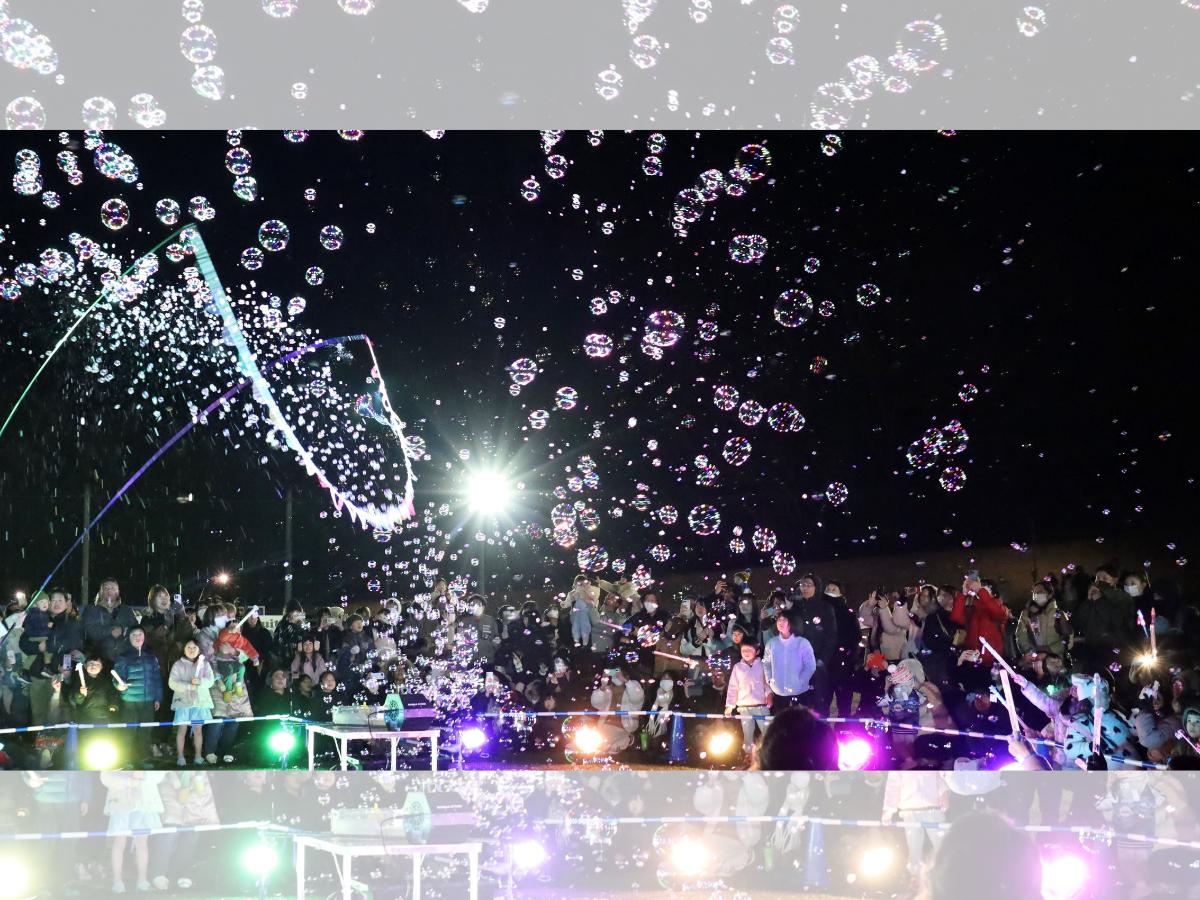 昼間のシャボン玉とは違う、夜ならではの光輝く魅力を味わうことができるイベント。