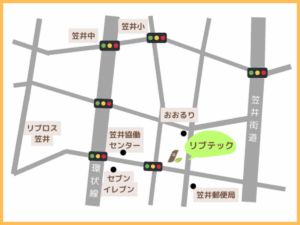 ショールーム「らく座」にご来店の場合は、「浜松市中央区笠井町868-3」までお越しください。