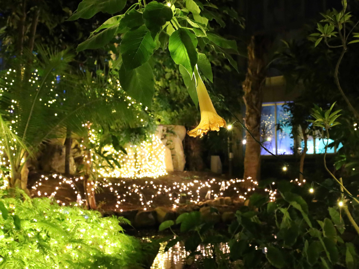 クライマックスは温室トロピカルドームをライトアップした心暖まる「魔法のポカポカの森」へ。