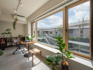 当社工場に併設のショールームがございます。ショールームでは、つるま~どの実物をご覧いただけます。見学は予約制となっております。設計事務所、工務店、建設会社のみなさまの見学を歓迎いたします。